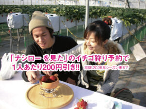【特別☆独占☆割引】「グルメいちご館前田」ナシロー を見た!のイチゴ狩り予約で 1人あたり200円引き!!New