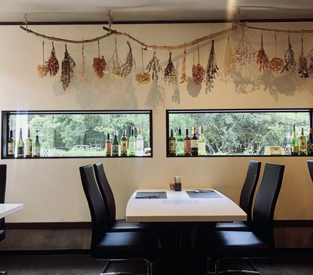 石塚シェフが腕を振るうのは、山梨市・万力の豊かな緑に包まれた心地よい空間。季節ごとに移りゆく地元野菜や旬の食材を主役に、想像力あふれる一皿をお届けします。ディナーはご予約制のコース料理を中心に、日替わりのおすすめやアラカルトもご用意。地元の誇り・甲州ワインも豊富に取り揃えており、食事はもちろん、ワインバルとしても気軽にお楽しみいただけます。自然と料理とワインが奏でる、ここでしか味わえないひとときを。