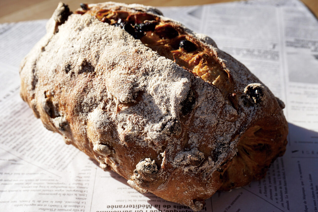 ノアレザン/レーズンとクルミをたっぷりと使ったライ麦パン。焼きたてを店頭で食べるとフルーツケーキのようにシットリしていますが、お持ち帰り頂いてカリカリに焼いてバターやチーズと合わせるのも人気です。お土産として一番人気の商品です。