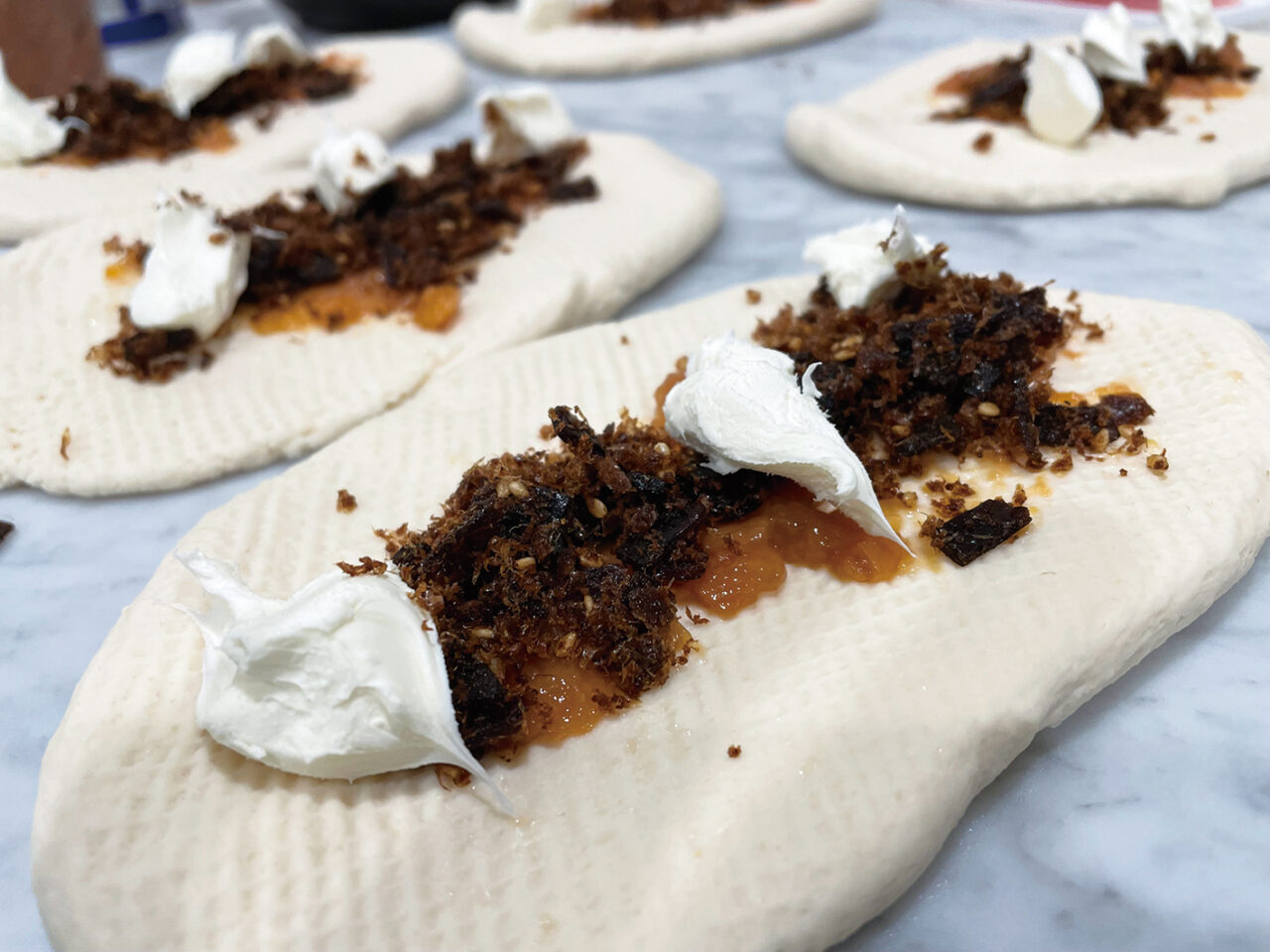 梅おかか410円(税抜き)/大きな梅干しは種を取って叩き、佃煮のおかか昆布とクリームチーズで組み合わせた米gel。ご夫婦のイチ推し、怖がらずに食べてみて♪リピーター多し!!