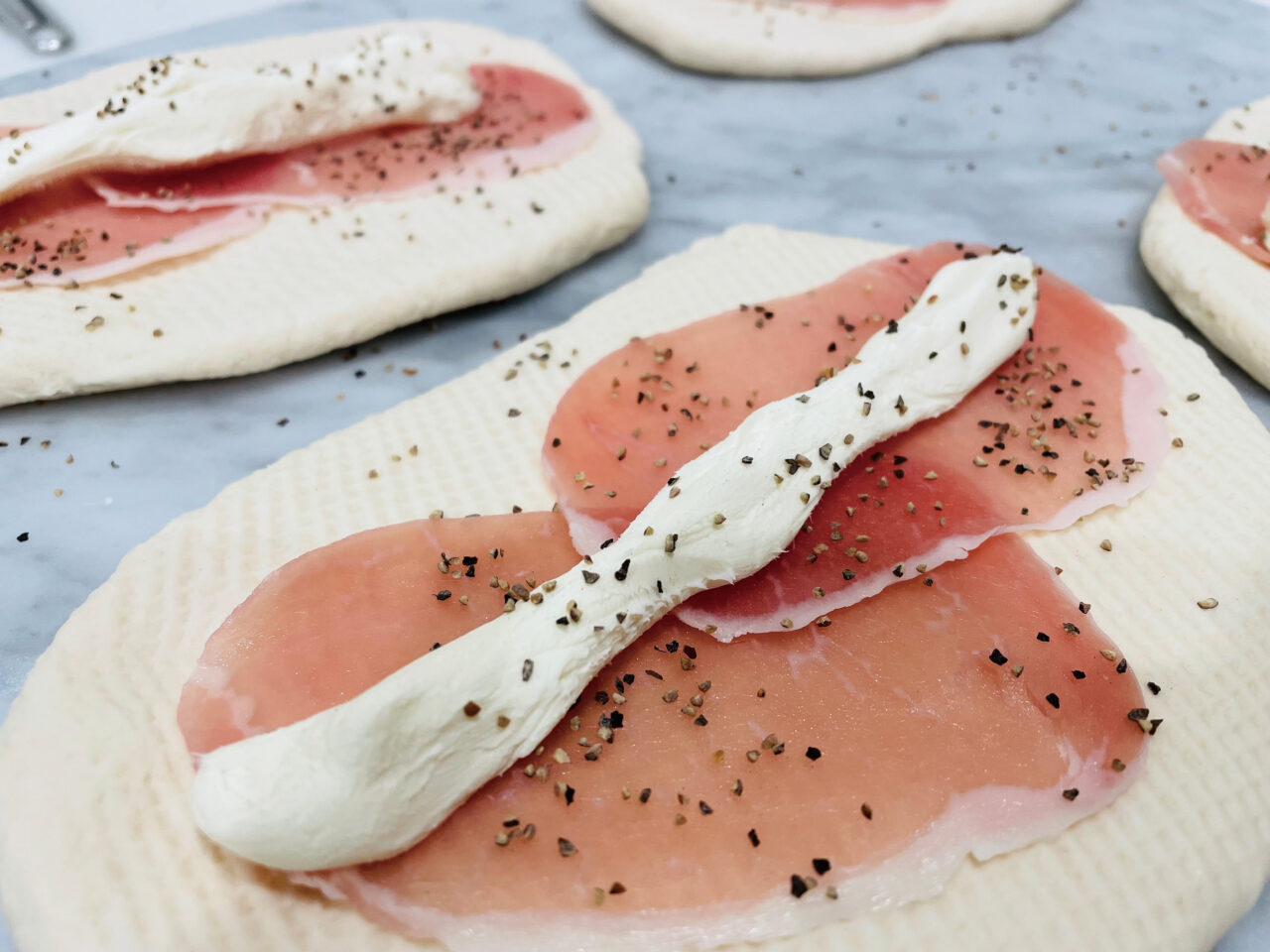 生ハムクリームチーズ410円(税抜き)/当店一番人気の米gel。