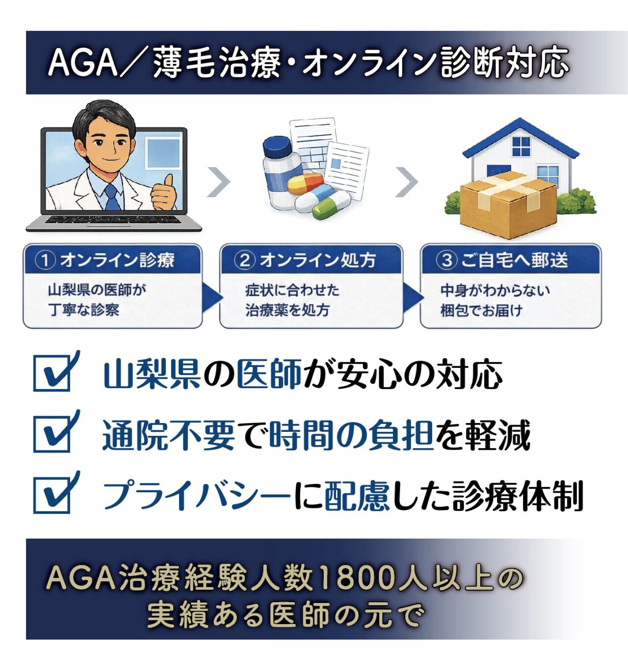 AGA治療2026.03.20【山梨県民限定】山梨県の医師が安心の対応!AGA乗り換えプランで2ヶ月無料!「このままでいいのか」 「費用や通院が負担」通院不要のオンライン薄毛治療とは?