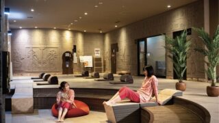 多種類のお風呂がある大浴場、露天風呂の高濃度炭酸泉は心地よく、人気のワイン風呂は色と香りでお客様を癒します。サウナはドライサウナ、ヒーリングサウナ、塩サウナ、スチームサウナ(女性大浴場のみ)があり、好みに合ったサウナで汗を流せます。県下最大級の「ストーンスパ」は古代オリエントをイメージした岩盤浴。落ち着きのある空間で、ゆったりとした時間をお過ごしいただけます。自慢のロウリュウは強烈な熱波で、疲れと老廃物を吹き飛ばします。他にも、4つの飲食店や、確かな技術でお客様をお迎えするリラクゼーションなど、癒しコンテンツをたっぷりご用意しています。