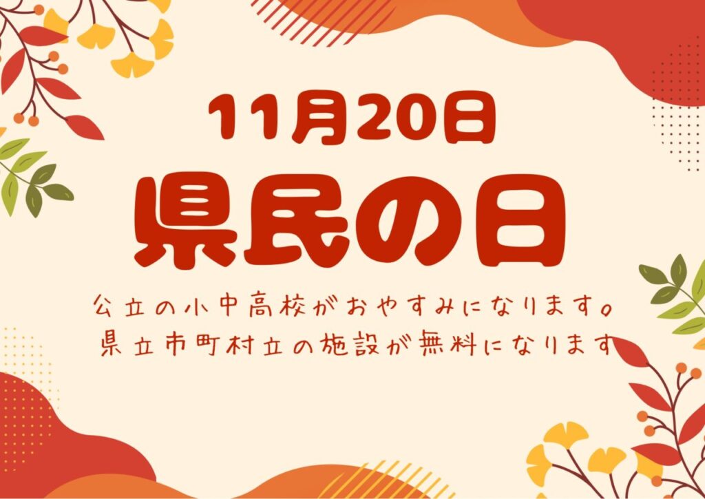 「令和7年11月20日 県民の日」施設利用料無料のお知らせあり。