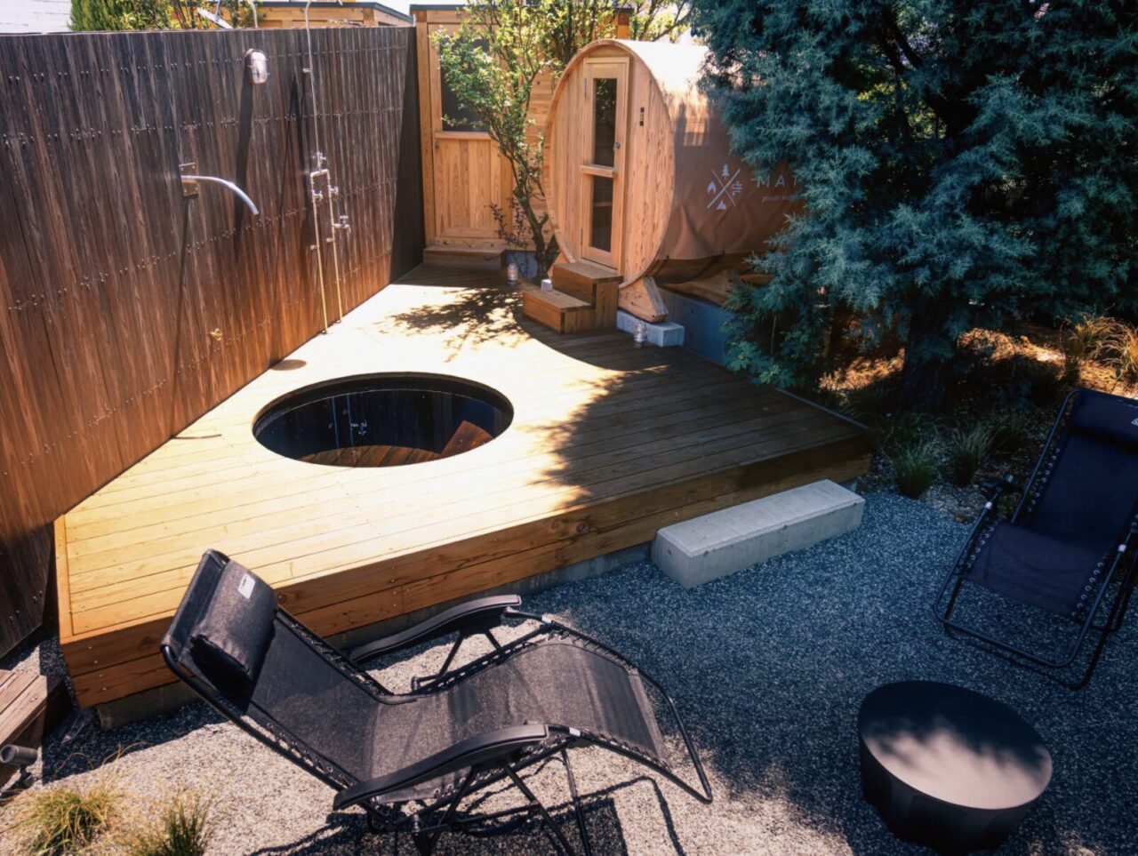 Yard Worksプロデュースのそれぞれ趣きの異なる空間の中で、ONE SAUNAの国産バレルサウナと、名水の地・やまなしの天然の地下水でととのう4つのテーマの”SAUNA YARD”MATKAの水風呂は天然地下水です。