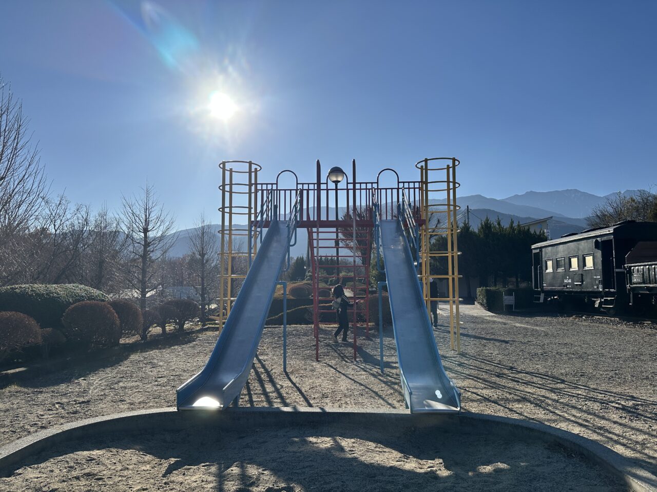 ミニSL2025.12.09「韮崎中央公園」の遊具が新しくなっていた。
