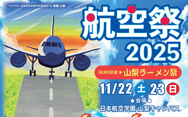 「日本航空高校 航空祭2025」は、2025年11月22日(土)・23日(日)に、山梨県甲斐市にある日本航空高等学校・山梨キャンパスで開催される学園祭形式のイベントです。一般の方も入場可能で、航空関連の催しや生徒たちによる様々なパフォーマンスが楽しめます。