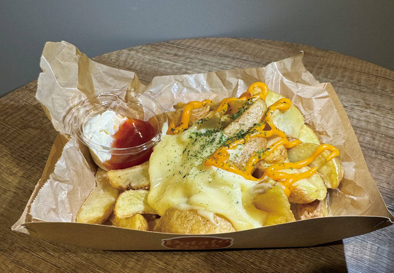 三日月状にカットされた厚みのある皮つきポテトは、外はカリッ、中はホクホク。ジャガイモ本来の旨みをしっかり感じられ、揚げたての美味しさに思わず笑顔がこぼれます。とろ〜りチーズをトッピングしてさらに充実の味わい!