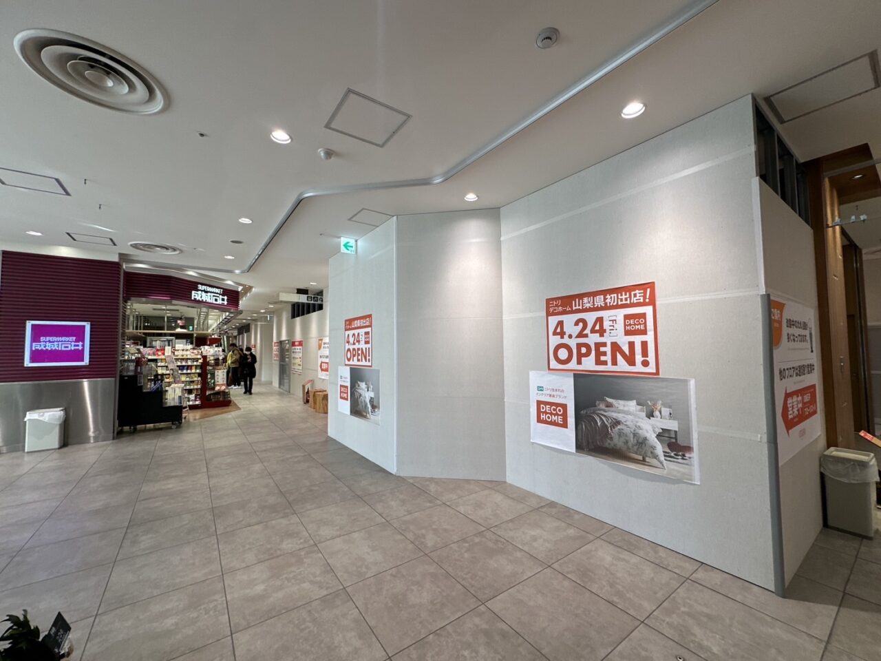 「デコホーム」は、これが山梨県内初出店。出店場所は、2025年3月に惜しまれつつ閉店した1階の食品売り場「セレオ市場」の跡地です。改装を経て、甲府駅の顔とも言える1階フロアが、新しく生まれ変わります。