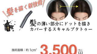 3Dドットペインティング2025.10.02【新登場で注目!】「スキャルプデザイン」 では、『分け目』『つむじ周り』『頭頂部』最・新・技・術であなたの髪の悩みを解決します。3Dドットペインティングで埋めていき 地肌を見えないようにするデザインです。