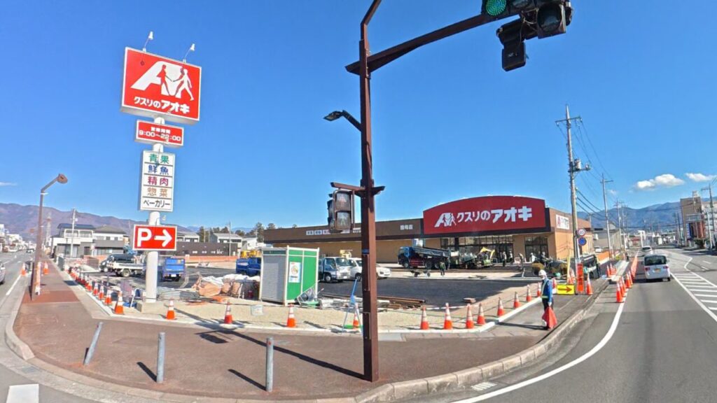 最近増えているクスリのアオキですが、山梨県内に6店舗を展開中(2025年10月4日時点)。「国母店」は7店舗目の見込みです。