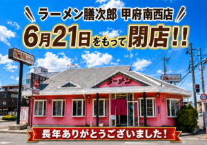 らーめん膳次郎 南西店が2026年6月21日で閉店へ 甲府市下石田にある「らーめん膳次郎 南西店」が、2026年6月21日(日)をもって閉店することが公式Instagramで発表されました。 投稿によると、同店は昭和58 […]